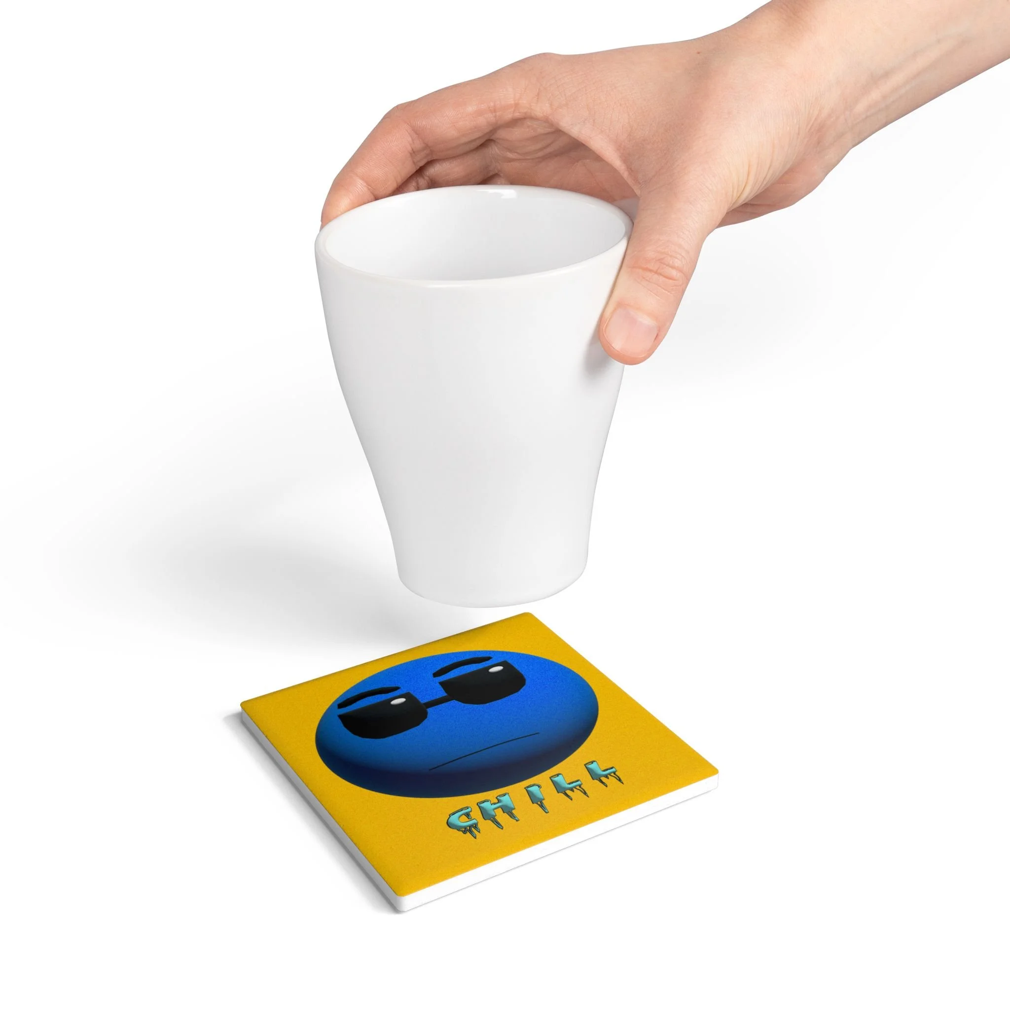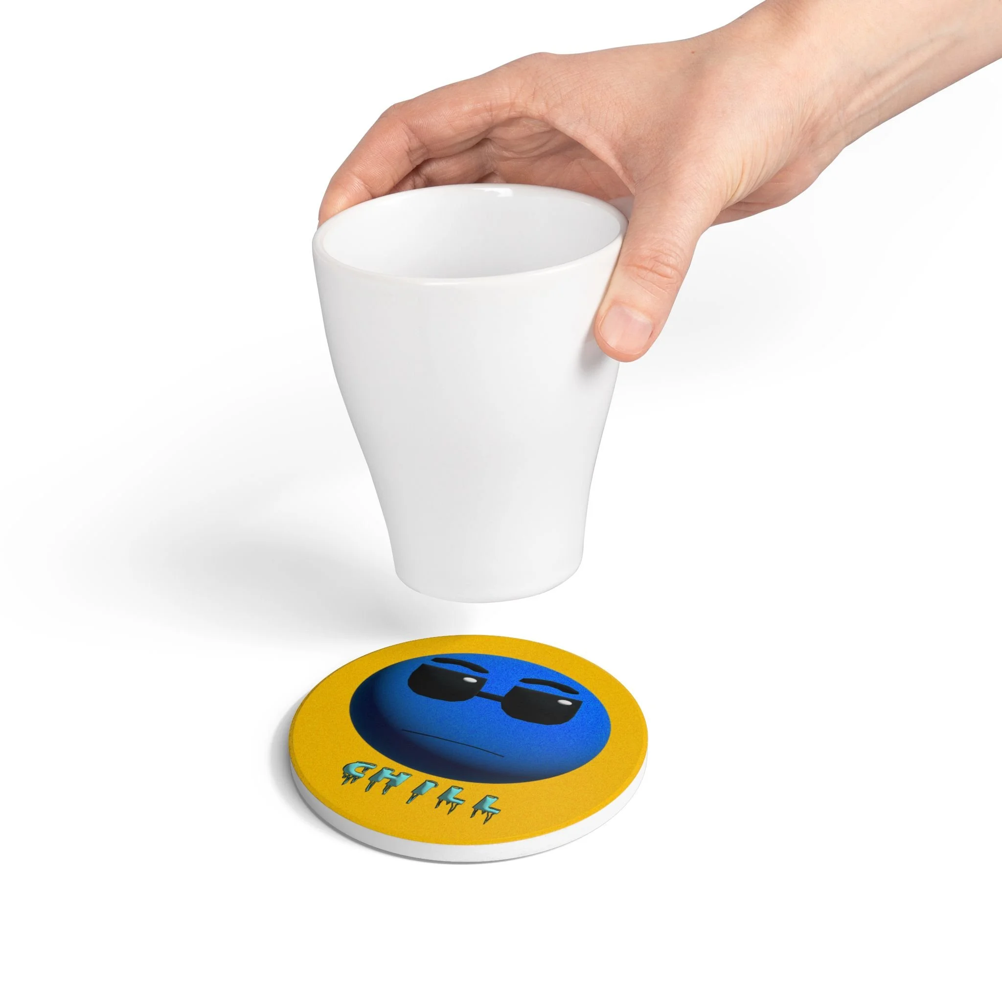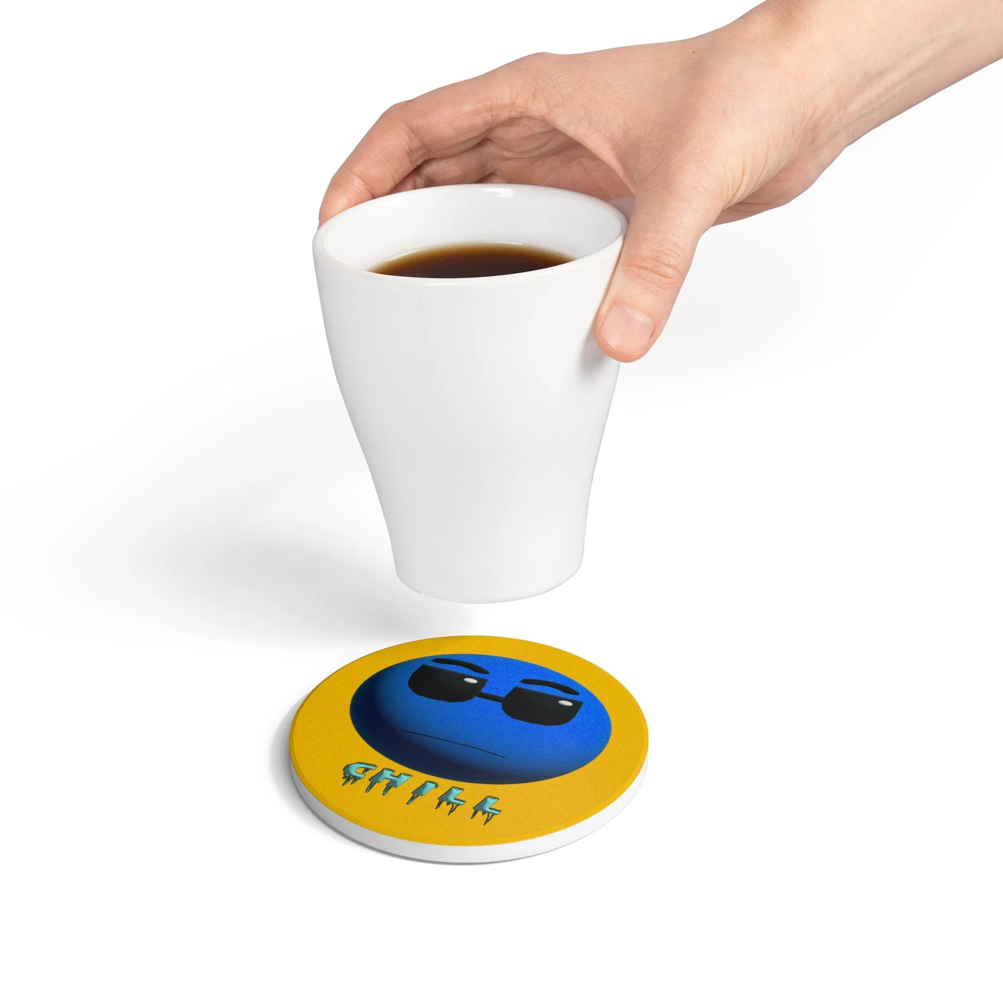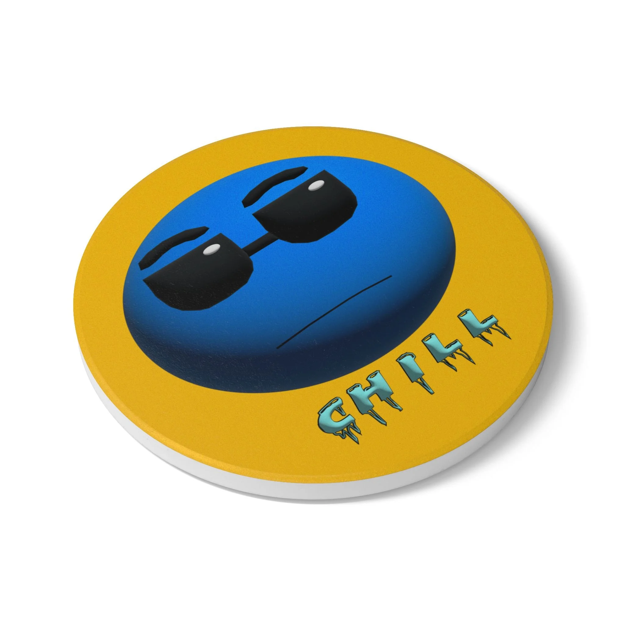 This ceramic coaster brings playful creativity to your tabletop. Bright, hand-drawn artwork labeled “Chill” sits at the center, turning a practical drink rest into a conversation piece for studios, rehearsal spaces, or music-loving homes. The smooth yellow ceramic face showcases color-rich printing that resists fading and wipes clean easily. A cork backing keeps the coaster firmly in place while protecting surfaces from heat and moisture. It’s sized for standard mugs and glasses and handles both hot and cold drinks — a small, sturdy accent that adds personality to coffee breaks, late-night practice sessions, or casual gatherings.